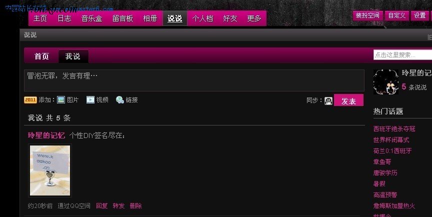 这时候我没有忘记我们强大的腾讯!先从QQ空间着手,我在空间发表说说的时候把我要说的话用图片代替,