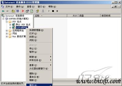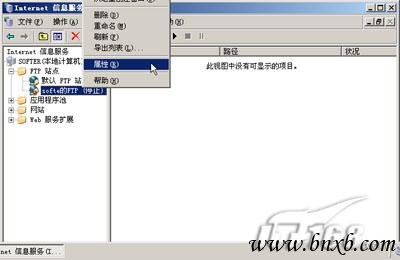 第一步:一般来讲我们要对已经建立好的FTP进行设置的话,都是通过FTP站点的“属性”来完成的。在该FTP站点上点鼠标右键选择“属性”。(如图26)