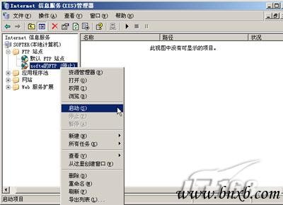 按照上面介绍的方法完成了FTP的建立工作,那么如何检测他工作是否正常呢?在internet信息服务(IIS)管理器中是无法察觉的。(如图25)