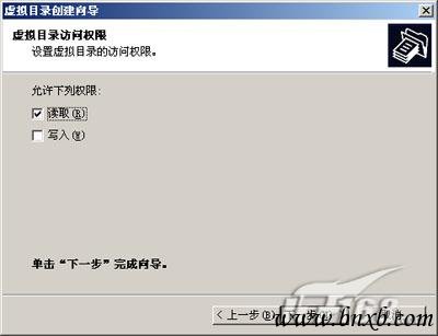可能有的读者到这里会犯迷糊,哪个设置用户权限了呢?实际上IIS中建立的FTP是和WINDOWS系统帐户紧密相关的,也就是说该FTP不具备建立独立帐户的功能,建立了FTP后我们使用WINDOWS自身的系统帐户就可以登录了,FTP帐户与WINDOWS操作系统帐号是完全统一的。这点和以往介绍过的TYPSOFT FTP和SERV-U是不同的,这些软件建立的FTP访问帐户是独立与WINDOWS操作系统帐号的。