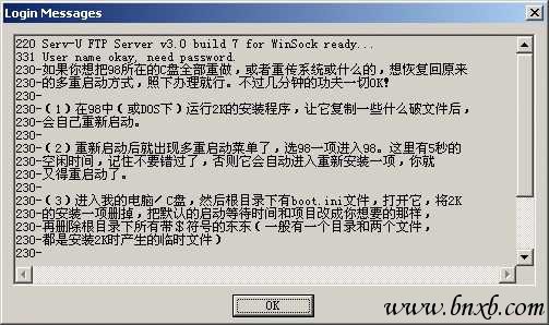 10、Logging message file(登录信息文件):在这里可以输入(或选择)一个事先建立好的文本文件(一般)的完整路径和文件名,登录成功之后就会出现相关提示信息。提示信息如下图: