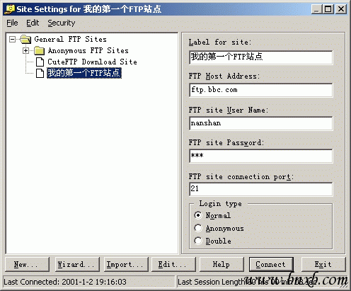 3、FTP客户端应用软件的设置。比如在CuteFTP中,如下图: