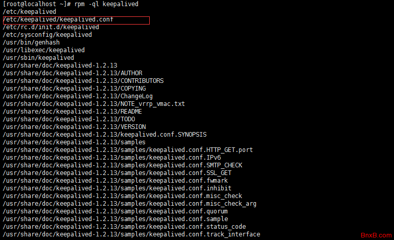 安装完成之后,使用rpm -ql 命令,查看一下Keepalived的安装信息