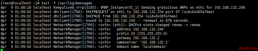 service keepalived start //启动服务 tail -f /var/log/message //查看日志