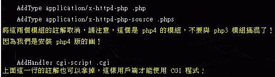 3. 开启 PHP 与其它模块:由于我们需要可以支持 php 模块的 apache ,所以需要将这个模块开启喔!