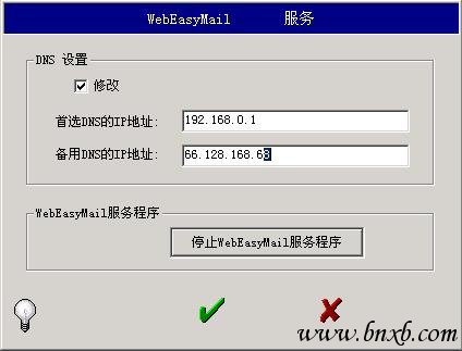 (1)WebEasyMail服务,如图3所示,它的服务包括DNS配置和启动或停止WebEasyMail服务程序。单击设置界面的“服务”,就可以根据我们实际情况设置它的服务了。