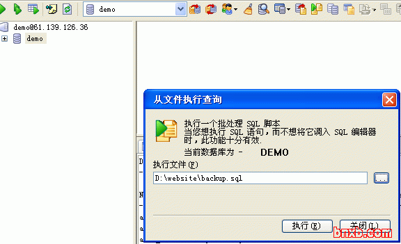 选择您原来备份的Mysql数据库的sql文件,然后点执行,即可完成数据库的导入恢复工作。