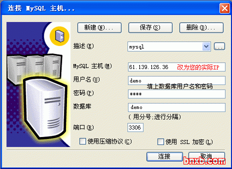 1.连接数据库。选“新建”。按提示填入您的mysql数据库的相关信息,然后点连接。