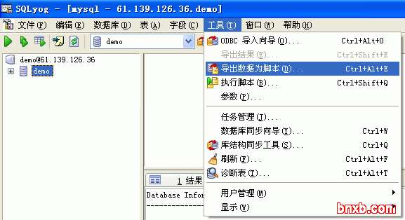 3.备份数据库:选择工具菜单中的“导出数据为脚本”,