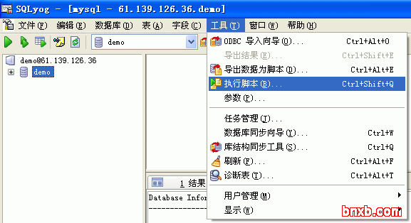 2.还原数据库: 选择工具菜单中的“执行脚本”。