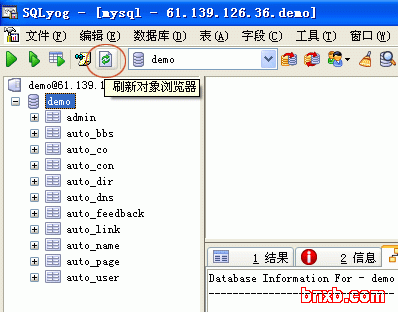 点击如下图所示的刷新按钮,可以刷新数据库信息。
