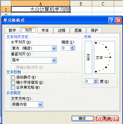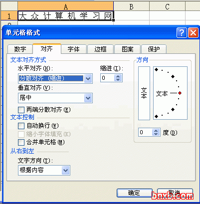 上图中,切换到"对齐"选项卡,然后,要想设置字符间距,完全靠"水平对齐"和"垂直对齐"了。