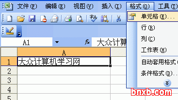 看下表,在A1单元格中,我们输入了字符,要想设置字符间距,就操作菜单:"格式"→"单元格"。