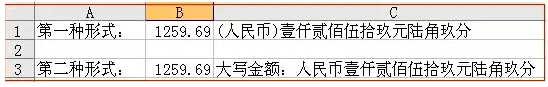 ="大写金额:"&IF(TRIM(B1)="","",IF(B1=0,"","人民币"&IF(B1<0,"负",)&IF(INT(B1),TEXT(INT(ABS(B1)),"[dbnum2]")&"元",)&IF(INT(ABS(B1)*10)-INT(ABS(B1))*10,TEXT(INT(ABS(B1)*10)-INT(ABS(B1))*10,"[dbnum2]")&"角",IF(INT(ABS(B1))=ABS(B1),,IF(ABS(B1)<0.1,,"零")))&IF(ROUND(ABS(B1)*100-INT(ABS(B1)*10)*10,),TEXT(ROUND(ABS(B1)*100-INT(ABS(B1)*10)*10,),"[dbnum2]")&"分","整")))