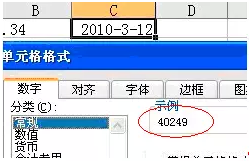 先说说日期这种特殊的数据类型,日期“2010-3-12”,其实是数字40249,如下图所示。