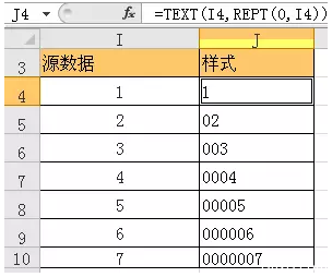 另外,前导0的效果,想显示几位就写几个0,可以配合rept函数来写,rept(字符,重复次数)。下图就是一个为数据前面加0的效果。