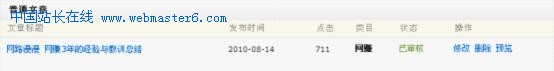 以上是我写的网赚3年经验与教训总结的文章,在A5获得了711个点击,在CHINAZ获得了151个点击,从这两个网站我也获得了几十个IP。