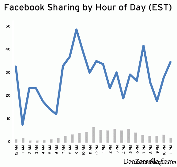 上午九点左右发布的文章在facebook上的转载量比其他时间段发布的文章都要高。