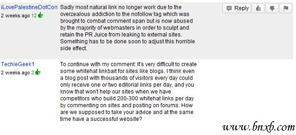 (Tritan:网友iLovePalestineDotCom的大意是:不过现在大部分自然链接已经没什么效果了,因为过度使用“nofollow”标签。本来是用来打击垃圾评论的,不过现在却被站长滥用来防止PR权重的外流。必须尽快采取措施来平衡这种可怕的副作用了。