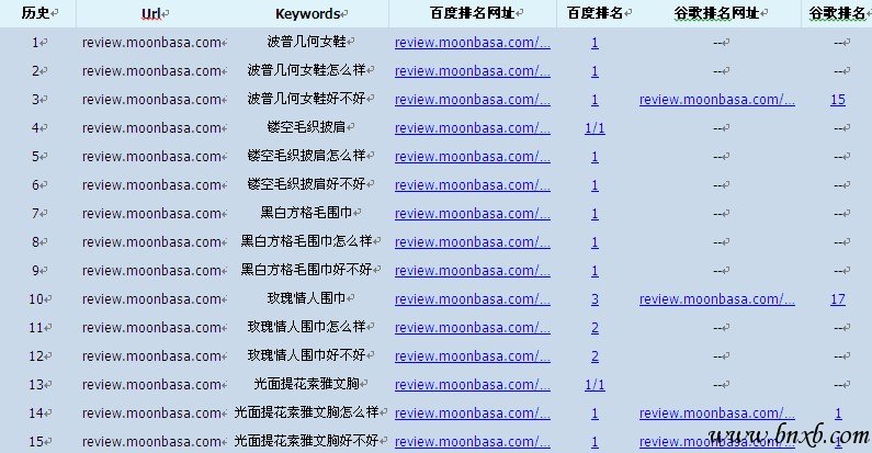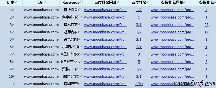 三是导航站,通过分析梦芭莎的外链构成,发现他们拥有大量的导航站的链接,这些链接不是通常的直链,而是采用了http://www.moonbasa.com/#a_id=1188-mzny 这种类型的链接,我估计应该是他们网站购买了大量的导航站链接,后面的参数是跟踪订单来源的,目前搜索引擎对于cps链接对网站的加权作用并没有说得很明确,不过从实践上来看,这种外链的效果也不错。梦芭莎的导航站链接很多,这里仅摘取几个: