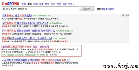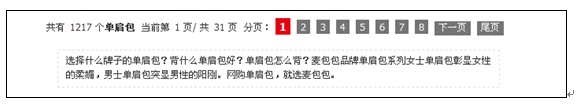 至少上面的某些点栏目已经包括,在些不多阐述,略过。选择栏目女包包作为栏目页的一个分析点。这个栏目已经没有h1标签了,已经把注意力下放到了栏目页面更新点的地方。