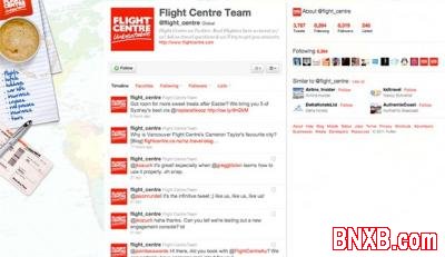 Flight Centre是一家总部在悉尼的国际旅行社。它通过社会化媒体发出广告招聘一个社会化媒体部门的职位。该公司的全球社会化媒体主管Gregg Tilson介绍,公司要求应聘者提供5个社会化媒体账号,一封140个字母的说明信介绍自己为什么适合Flight Centre的职位,然后再提交一份同样140个字母的简历——全部通过Twitter私信发出。