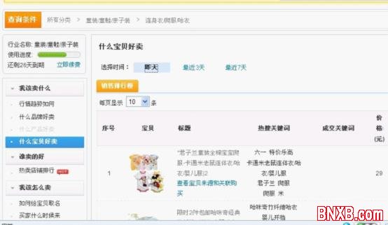 然后再点什么宝贝好卖,既可知我们大致可以卖到什么样的水平。还可看成交趋势看是否产品要转入淡季了,为推广产品做决策。同时要点一下宝贝来源和关联购买,因为有些销量是通过活动之类的得来的,就不能作为决策数据,应该看那些在自然流量与直通车流量下的销售情况。