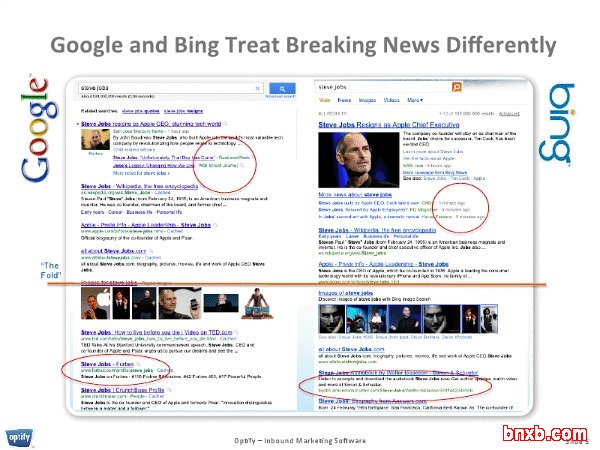 Optify公司CEO兼共同创始人布莱恩-戈夫曼(Brian Goffman )表示:“谷歌和必应都反映出他们对于重大新闻事件都是创造出不同的搜索结果页面。谷歌会更加倾向于优先考虑权威的来源,而相比之下,必应会有更多最新的消息,但是这些并不一定是高权威的。