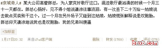 1月17日的#京城奇人#以纯文字无配图的方式发布,结果迅速蔓延数据效果。