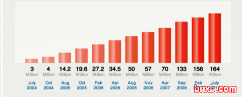 和很多社交媒体工具一样,过去几年博客使用率稳定增长,博客潜移默化影响着我们的生活。请看以下来自Invesp的图表研究。2011年12月2日,根据BlogPulse的数据显示,博客总数已高达178,637,835(近1.8亿)