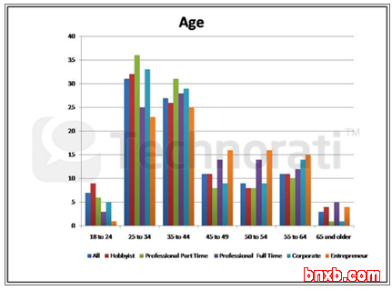 博主遍布世界各地,年龄层跨度大。而人群多样性带来了值得注意的共性。(点击此处了解更多Technorati的统计数据)