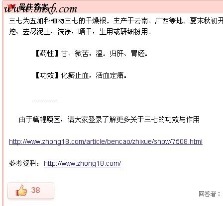 用我自己的例子,我就是这样做的。比如我测试用的是“三七的功效与作用”,那我要使自己的帖子在这关键字靠前,我就用了一点小技巧,那就是“顶自己的帖子",同时也发现,有最佳答案的帖子顶的次数越多,排名就相对于靠前很多。(图2所示)