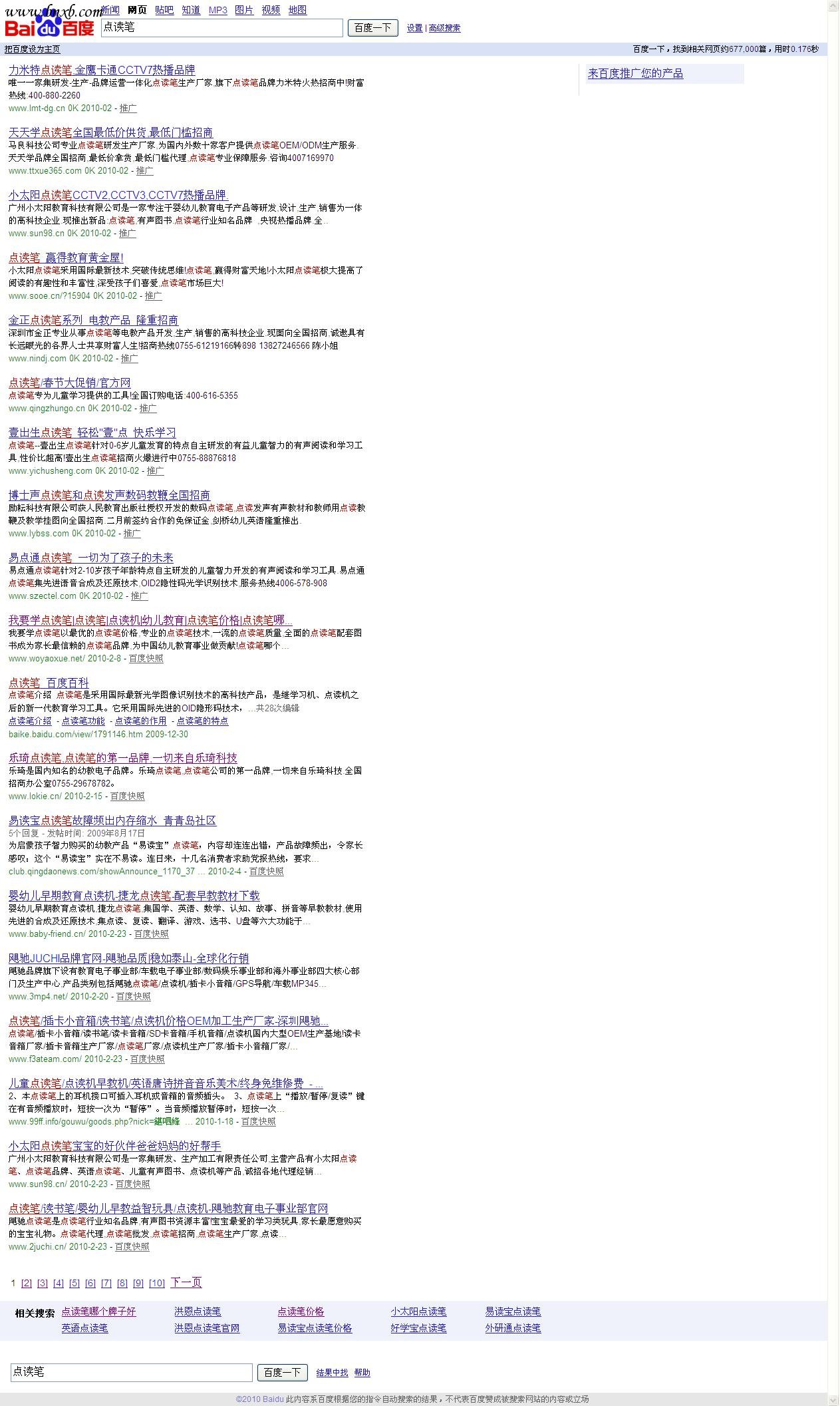 牛皮不是吹,自然排名稳居百度首页第一,我拿实例并附图讲解:主关建词: 点读笔 百度自然排名第一 前面9个收费推广。如下图: