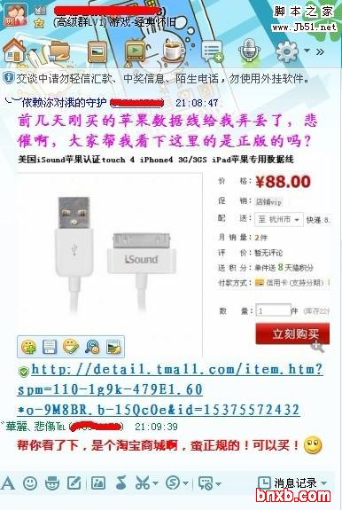 加入一些苹果粉丝的群,进入群后如果时间充裕的同学可以多和群里成员特别是管理们扯淡,搞熟悉,为后面打基础!不然赤裸裸的发链接不但没效果,反而会被秒踢。熟了之后可以慢慢的聊着聊着降话题引过去,然后丢链接;如果没什么时间和群管理混熟的,最简单的办法就是:演双簧。以消费者和围观者的双重身份发送某产品的链接,问他们是否值得购买!