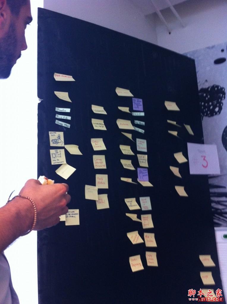 这就是为什么我们更加注重视觉引导的能力──如果可能事先把设计过程的框架用视觉化的方式搭建好;尽可能地使用白板,持续不断地把已经达成一致的东西写在白板上;更好使用贴纸的颜色,及时对信息进行组织和验证;对同一个设计挑战分组进行草图设计并展示,避免设计被那些口才好,强势有气场的人绑架。