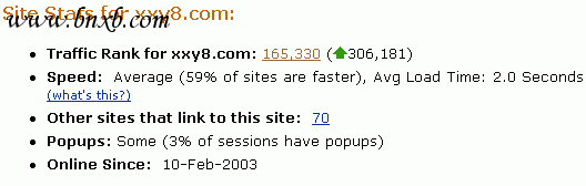 翻译这一句就是:xxy8.com 现在排名 165,330 位,在三个月来上升了306,181位。