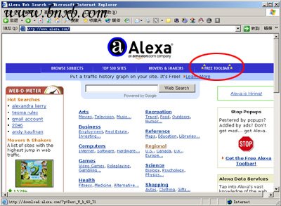 1、进入: http://www.alexa.com/ 网络,在首页右上角找到FreeToobar的下载连接