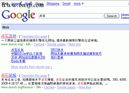 做SEO的都知道Google sitelinks。简单的说,sitelinks是指在Google搜索某些关键词时,除了正常的排名之外,还列出最多8个内页链接。比如搜索点石时出现的: