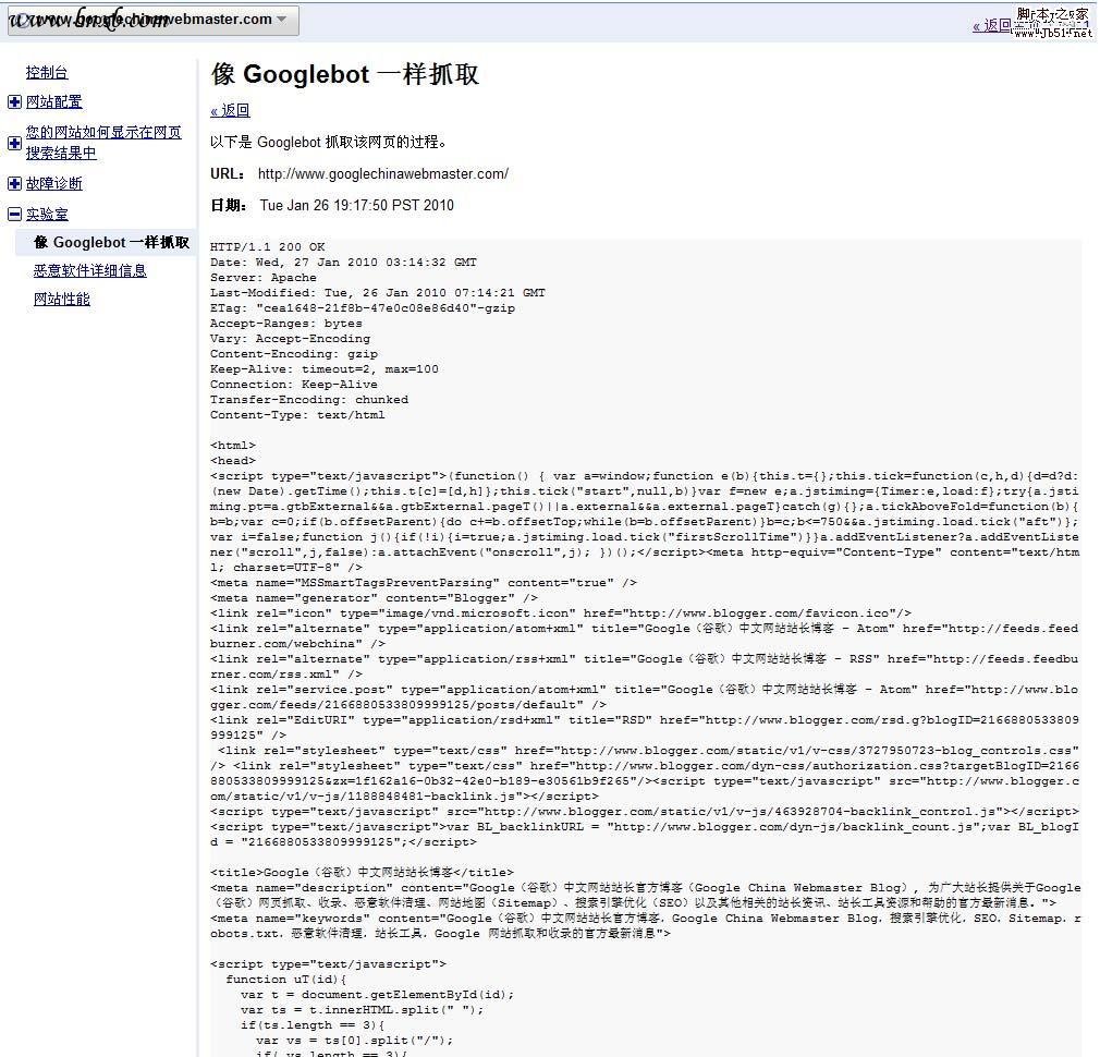 过去遇到这种情况的时候,往往很难发现问题的症结所在,因为网站在用户看来很正常。也许只有利用Googlebot的用户代理(User-agent)、使用来自Googlebot IP的请求,才能看到隐藏的内容。但现在,这些问题已不复存在:利用网站站长工具(Webmaster Tools)中的新的实验室功能——像Googlebot一样抓取,你就可以清楚看到Googlebot所看到的内容,任何类型的伪装都无所遁形。下面,我们将向你展示如何使用这项功能: