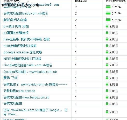 当然了,虽然不多,但是对于我这个成立不到1个月的新站来说,我已经很满意了!呵呵。另外,今天小站的IP也达到了最高点,截止目前为止是87个IP,估计到24点,能突破100个,哈哈!希望以后能一天比一天高!呵呵!最后各位站长朋友们需要注意的是,并不是所有的网站都适合做热门关键字,这要求大家的网站需要具备以下几个条件: