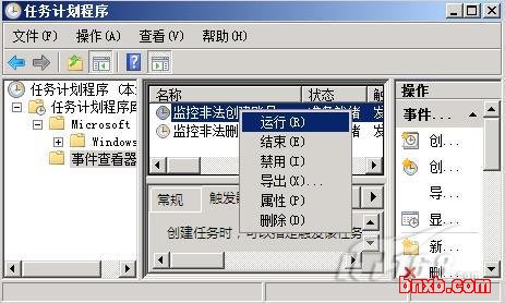 创建成功的各个触发任务会自动出现在Windows Server 2008系统的任务计划列表中,进入任务计划列表窗口,我们就可以对已有触发任务进行随心所欲地管理、设置了。在管理已有触发任务时,我们可以按照如下步骤进行操作: