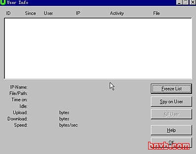 选择“FILE”菜单中的“USER INFO”选项。在弹出窗口中的上半部分将会显示出所有当前正在与服务器连接的用户。用鼠标点击其中的任一用户将会在窗口的下半部分出现该用户的详细信息。