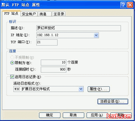 设置连接,同Web服务器一样注意启用日志纪录。