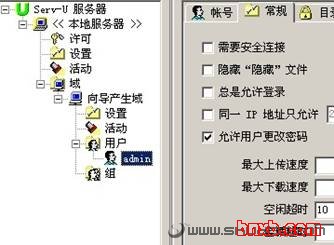修改密码的前提条件是在Serv-U上开启了允许修改密码的功能,方法是在Serv-U管理界面的用户列表里选中自己的用户,在右侧“常规”选项卡里选中“允许用户修改密码”复选框,然后点击“应用”按钮。