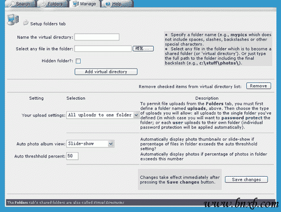 同时浏览器会打开你自己的BadBlue站点,你可以通过不同的页签进行不同设置,让我们看一下各个页签下的内容: