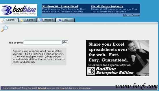 我们的第一站是一款以P2P为风格特色的WEB服务器软件——BadBlue。