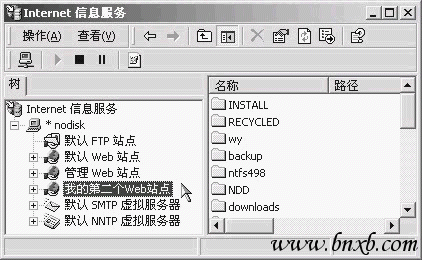 当IIS添加成功之后,再进入“开始→程序→管理工具→Internet服务管理器”以打开IIS管理器,对于有“已停止”字样的服务,均在其上单击右键,选“启动”来开启。
