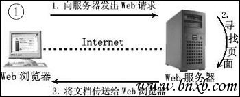 Web服务器如何工作:在Web页面处理中大致可分为三个步骤,第一步,Web浏览器向一个特定的服务器发出Web页面请求;第二步,Web服务器接收到Web页面请求后,寻找所请求的Web页面,并将所请求的Web页面传送给Web浏览器;第三步,Web服务器接收到所请求的Web页面,并将它显示出来,原理如图1。