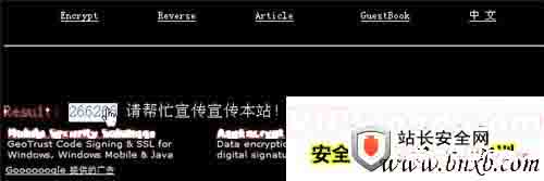 从图中大家可以清除的看到,所得到的密码以被MD5加密了,所以现在我们需要将其得到的加密密码复制后,进入到XMD5专业的解密网站,然后在把密码粘贴到界面文本内,单击“破解”按钮,即可得到解密成功的明文266266密码(图4)。