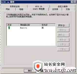 在WEB服务扩展中启用所有未知ISAPI筛选器,然后在需要使用伪静态的网站属性中选择“ISAPI筛选器”,然后选择“添加”:
